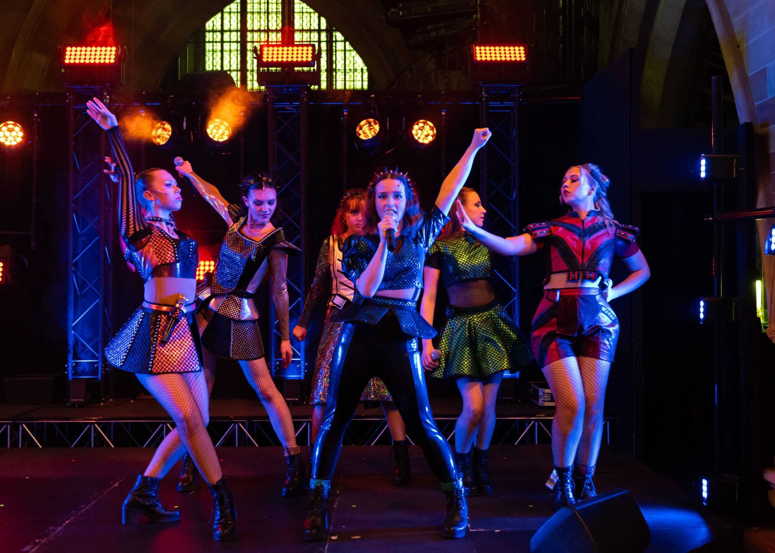 Jessica Bennett is the Director and Choreographer and Oliver Rowe Musical Director of SIX and what a show they gave us. Technically as close to perfect as you could get. With spectacular lighting and great use of space, they got the very best from her undoubtably talented singers and dancers.